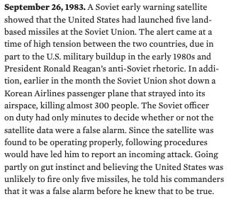 We can clearly see how precarious and dangerous this all is; we can see the amount of luck needed even when we’re lucky enough to have the best people running the world’s largest nuclear arsenal.