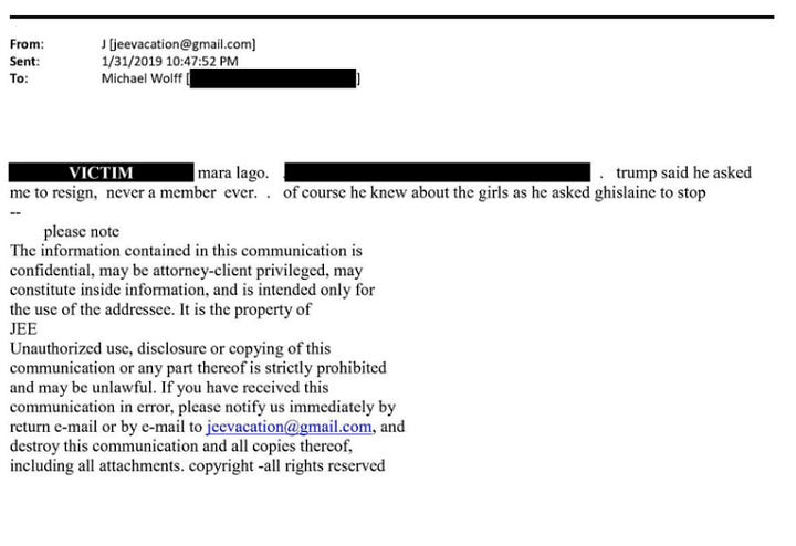 “if we were able to craft an answer for [Trump], what do you think it should be?” — from Epstein to Michael Wolff, his biographer.
